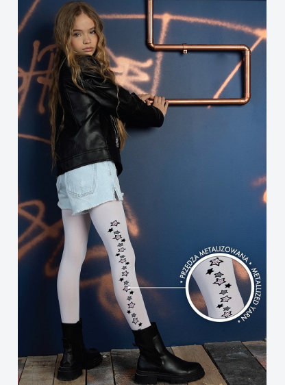 Колготки для дівчинки з малюнком товщиною 40 DEN. Збоку прикрашена зірочками з додаванням металізова..