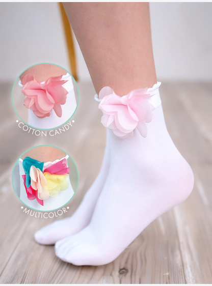 Шкарпетки для дівчаток з пришитою квітковою аплікацією. Ідеально підходить для весняних та літніх дн..