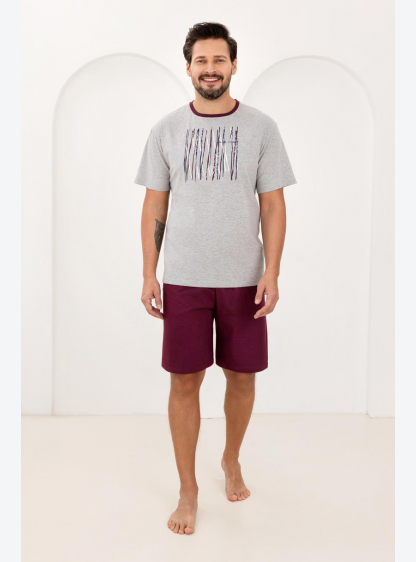 Чоловіча бавовняна піжама – м’яка, дихаюча та приємна для шкіри. Футболка з короткими рукавами, круг..
