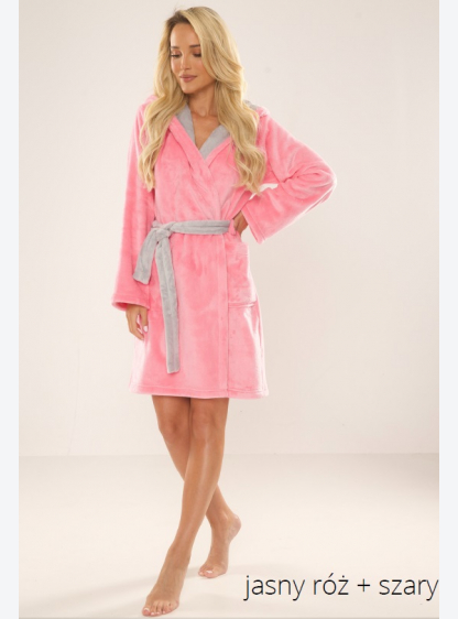 Жіночий короткий халат з капюшоном з м'якого і приємного на дотик матеріалу. Зав'язується на талії, ..