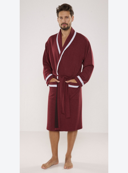 Чоловічий халат з коміром, що зав'язується на талії, кишені на стегнах. Склад: 79% бавовна, 17% полі..