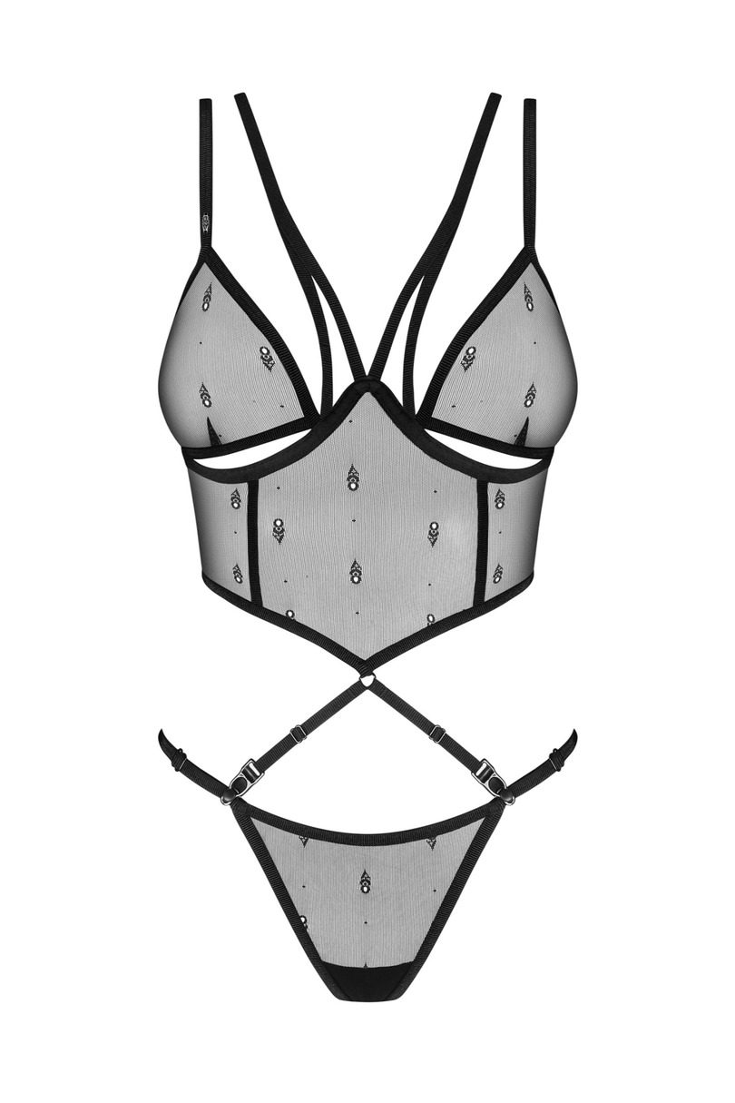 Топ і стрінги Anniverse Special – це чуттєвий дует з унікальної колекції Obsessive, створений для жінок, які хочуть поєднати комфорт зі сміливим, привабливим дизайном. Прозора тканина ніжно відкриває фігуру, підкреслюючи природні вигини, а сучасний крій додає елегантності та вишуканої жіночності. Це ідеальний вибір для романтичних зустрічей та особливих вечорів. Топ має чашечки на кісточках, які забезпечують м'яку підтримку та красиво формують груди. Регульовані бретельки та багатопозиційна застібка забезпечують ідеальну посадку. Стрінги гармонійно доповнюють весь ансамбль, створюючи цілісний та неймовірно чуттєвий комплект. Витончений логотип бренду на прозорому матеріалі підкреслює преміальний характер та увагу до деталей.