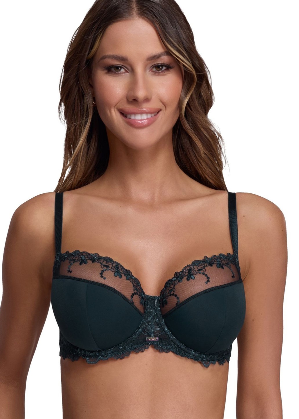 Бюстгальтер AV 1030 у своїй новій кольоровій палітрі полонить своєю елегантністю та функціональністю. Його унікальний відтінок петролено-зеленого кольору привертає увагу, а перевірена напівм'яка конструкція K-1030 гарантує ідеальну посадку для всіх типів грудей. Нижні чашечки, виготовлені з м'якого пінопласту, покритого еластичною тканиною, забезпечують стабільність та комфорт, а верхні, прикрашені тонкою вишивкою на тюлі, додають легкості та жіночного шарму. Бретелі регулюються (за допомогою металевого антиалергенного регулятора), а ширина регулюється відповідно до вашого розміру. Подвійна або трирядна застібка на гачки (трипозиційна), бічні кісточки та перемичка з мереживною обробкою забезпечують надійну підтримку навіть для великих розмірів. Еластична спинка з мікрофібри підвищує комфорт та стабільність. Ця модель-бестселер роками завойовує жіночі серця – настав час і вам закохатися в неї! Склад: 82% поліамід, 11% еластан, 5% поліуретан, 2% бавовна