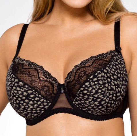 Гарний напівпрокладений бюстгальтер. Нижня частина чашки покрита тканиною з малюнком, а верхня - з тонкого мережива. Бюстгальтер має регульовані незнімні погони. Склад: 88% поліамід, 8% бавовна, 4% еластан.