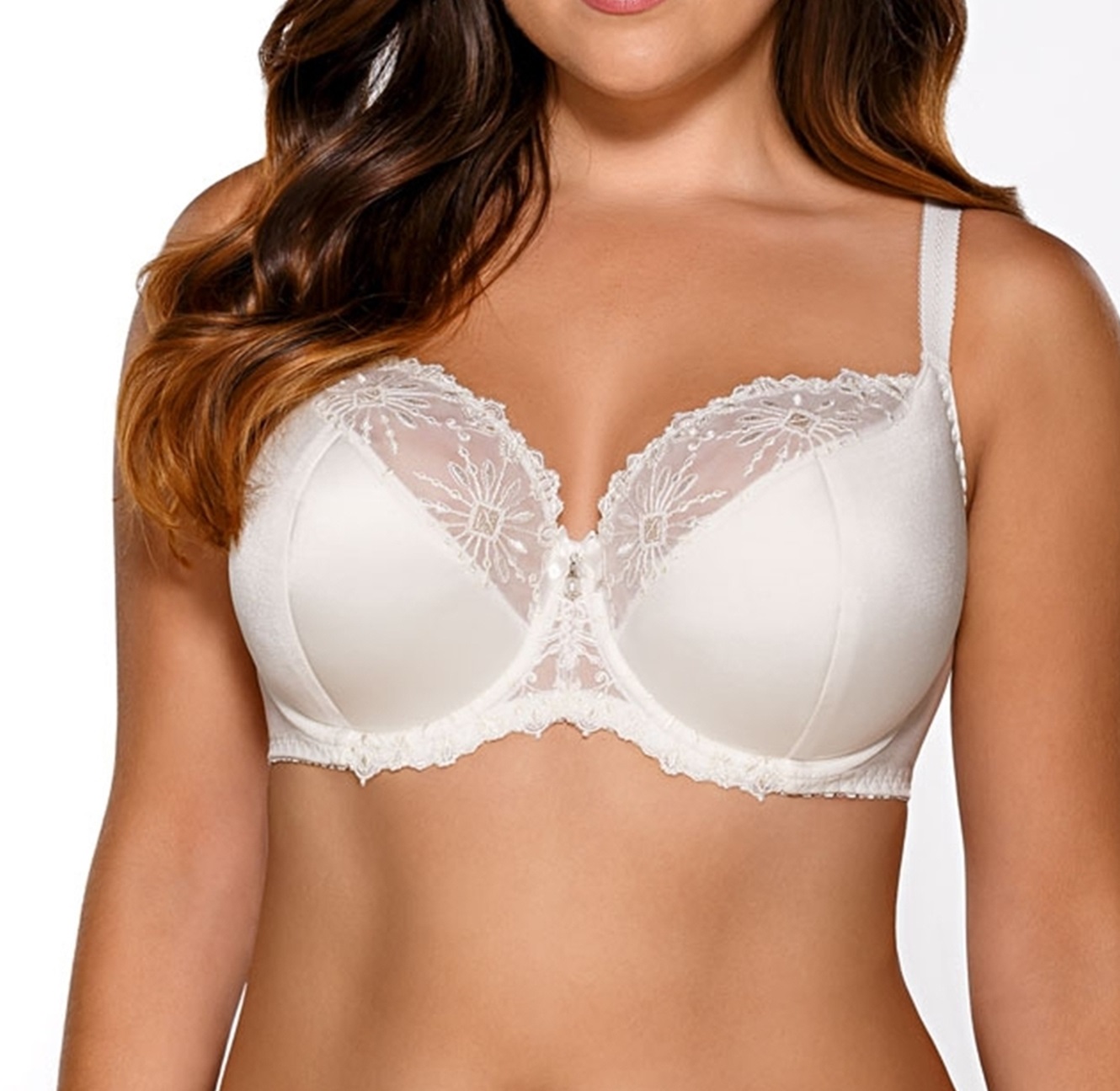 Напівпрокладений бюстгальтер з однорідної мікрофібри з гнучкою сіткою у верхній лінії, прикрашеною ефектною вишивкою. Гладкі боки, незнімні погони. Модель чудово підтримує та збирає бюст. Склад: 88% поліамід, 8% бавовна, 4% еластан.