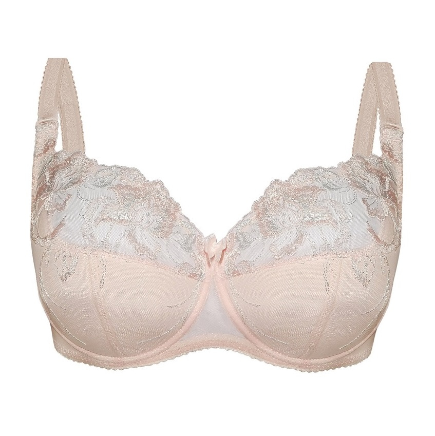 Гарний напівпрокладений бюстгальтер, рекомендований дамам з повними грудьми. Напівжорсткі миски, прикрашені красивою вишивкою. Спинка зроблена з щільного трикотажу. Сторони, зміцнені вертикальною підкладкою. Бюстгальтер чудово формує і піднімає великі груди.