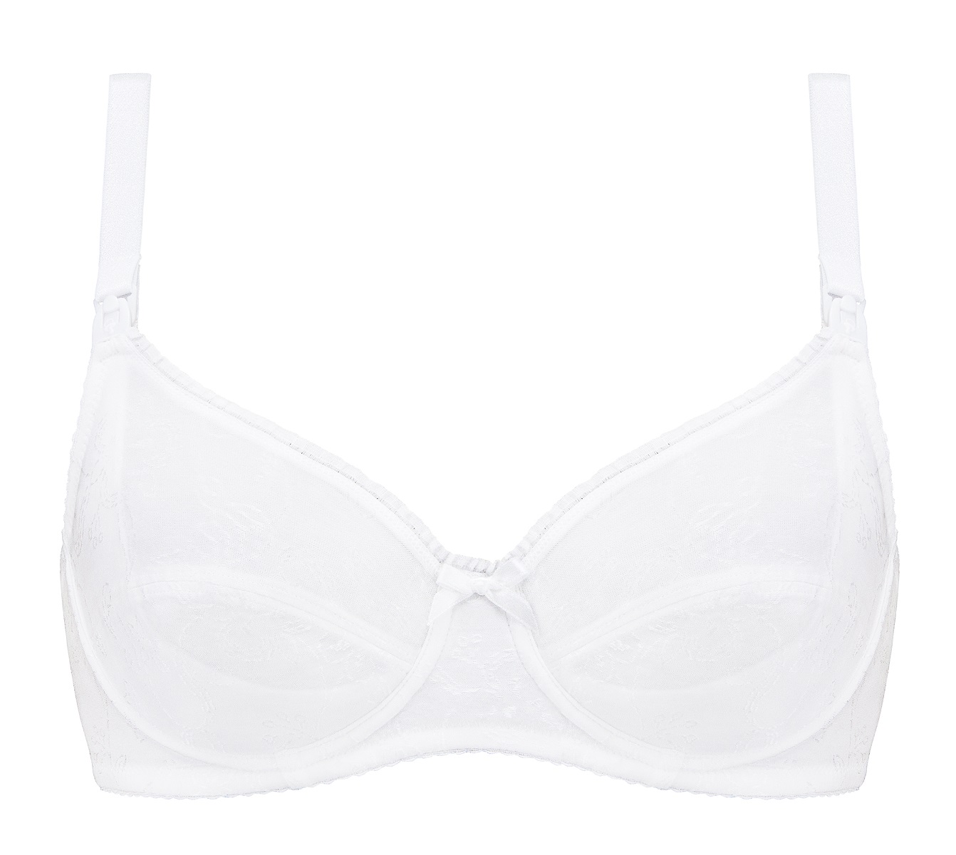 Бюстгальтер для годуючих мам, виготовлений з сучасного жакардового мікроволокна з бавовною з ніжним квітковим мотивом. Чашки підтримуються підкладками. Четверний регульований бюстгальтер.
