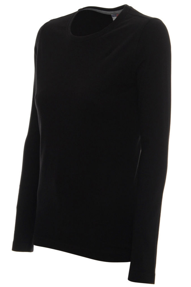 Жіноча футболка з довгими рукавами виготовлена з однотонної джерсі. Приталена тканина пропрана з використанням ферментів для бездоганного вигляду. Силіконове покриття робить її м'якою та приємною на дотик. Горловина має двошаровий ребристий манжет з еластаном для додаткової зносостійкості. Горловина має контрастну стрічку на горловині, а плечі мають підсилюючу та стабілізуючу стрічку для додаткової зносостійкості. Подвійні щільні шви, виготовлені з ниток найвищої якості. Вага: 175 г/м². Склад: 100% гребінна бавовна кільцевого прядіння. Подвійні щільні шви, виготовлені з ниток найвищої якості.