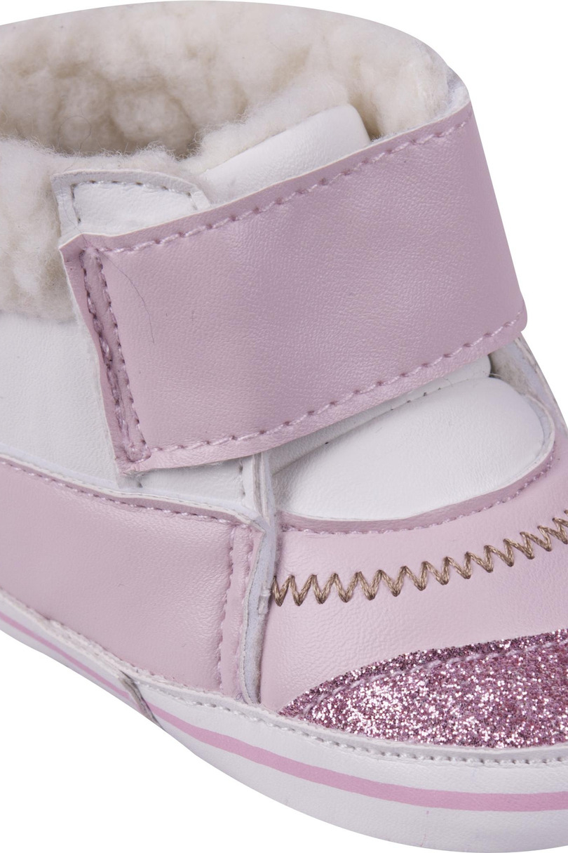 Взуття для дівчаток. Модель у стилі кросівок з блискучого матеріалу, з пухнастою підкладкою та застібкою на липучці.