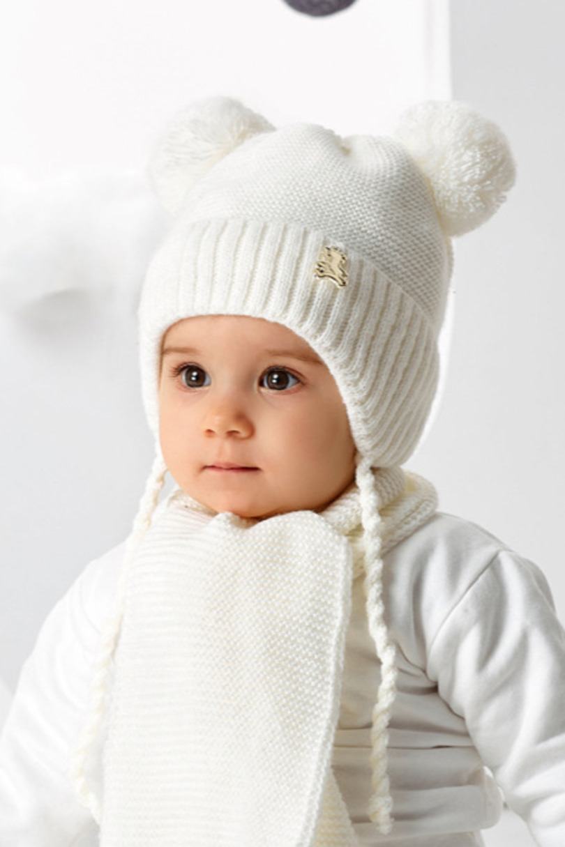 Комплект для дівчинки: пов'язана шапочка, підкладка з бавовни + шарф.