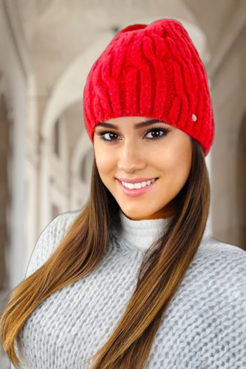 Надзвичайно тепла, м'яка і приємна на дотик шапка, прикрашена ефектним плетінням. Виготовлена з високоякісної пряжі з вовною. Оздоблений табличкою з логотипом компанії. Склад: 70% акрил, 20% шерсть, 10% поліамід