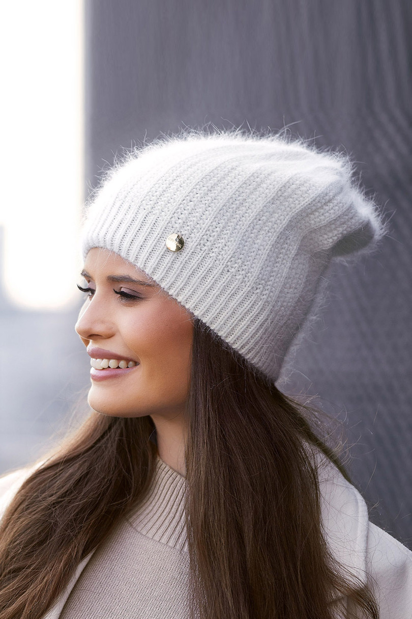 Стильна жіноча зимова шапка "Off Pink" поєднує елегантність з винятковим комфортом. Виготовлена з високоякісної пряжі, що складається з 50% ангори та 50% нейлону, вона неймовірно легка, м'яка та пухнаста. Завдяки натуральним властивостям ангори, шапка чудово зберігає тепло, забезпечуючи ідеальний захист у морозні дні. Прикрашена круглим значком з написом "Off Pink", вона додасть модного акценту до будь-якого зимового вбрання. Це ідеальний вибір для жінок, які цінують тепло, комфорт та сучасний дизайн.