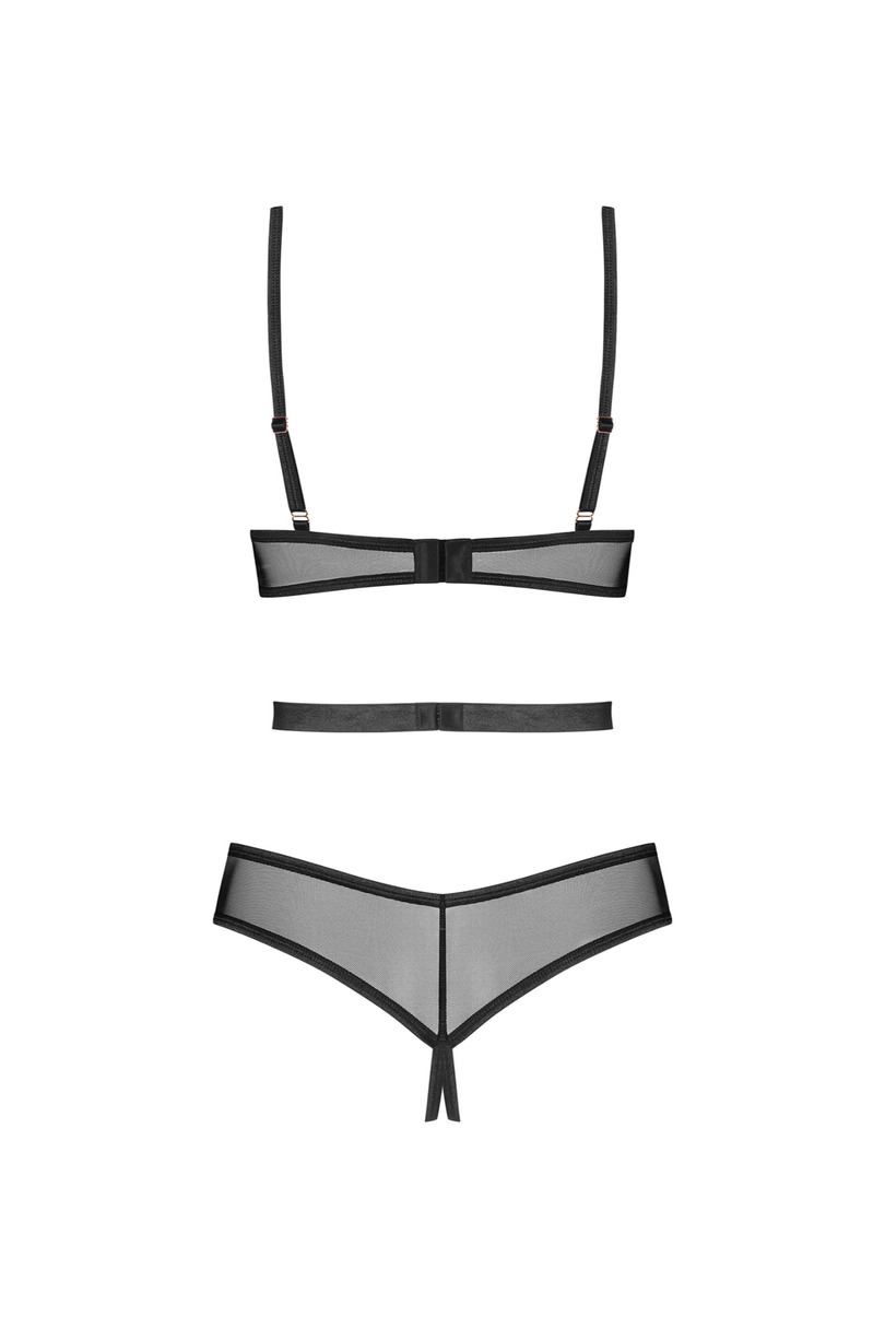 Потіште свої почуття та продемонструйте свою впевненість у цьому унікальному боді з відкритою ластовицею, яке поєднує елегантність зі сміливим характером. Прозорий матеріал ніжно облягає тіло, підкреслюючи його природну красу, а регульовані бретельки забезпечують ідеальну посадку. Металеві акценти кольору рожевого золота додають нотку розкоші. Цей стиль розроблений для жінок, які не бояться спокушати та хочуть відчувати себе винятково чуттєвими — як вдень, так і вночі.