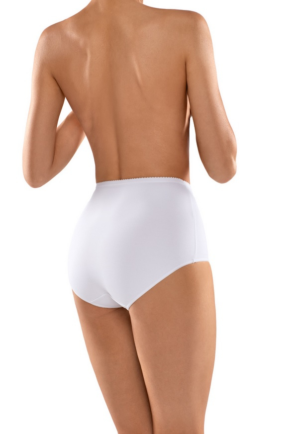 Жіночі модельні труси з високою лінією талії, нарощеними на стегнах. Силікон з внутрішньої сторони, щоб запобігти ковзанню. Вони коректують живіт, стегна і сідниці. Склад: 56% поліамід, 30% еластан, 14% бавовна.