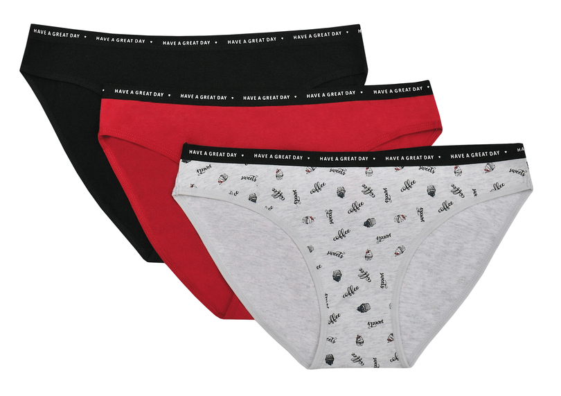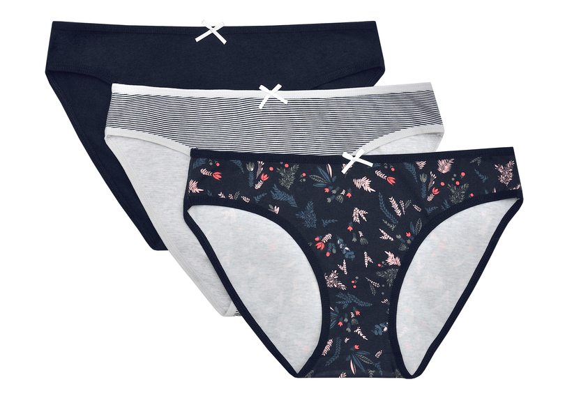 Жіночі труси з високоякісної бавовни. Склад: 95% бавовна, 5% еластан. Упаковка містить три штуки.