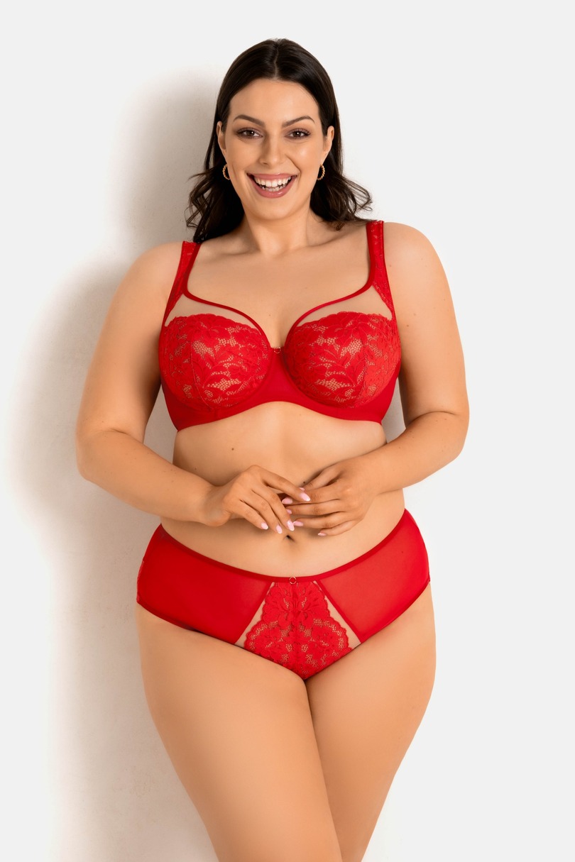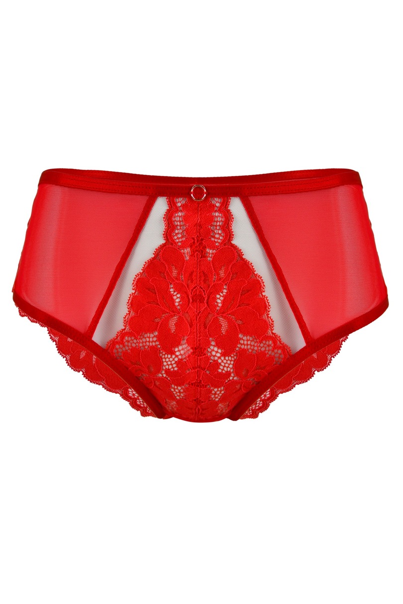 Трусики Jasmin 19152 RED від Mediolano поєднують класичну форму з сучасною, чуттєвою естетикою, багато оздоблені елегантним мереживом насиченого червоного відтінку. Прозорі сітчасті передні панелі додають легкості, а мереживна задня частина ніжно підкреслює жіночний силует. Повністю приталений дизайн гарантує комфорт протягом усього дня. Бавовняна ластовця забезпечує гігієну та повітропроникність. Це ідеальний варіант для жінок, які цінують чуттєвість у поєднанні з комфортом. Склад матеріалу: 78% поліамід, 12% еластан, 5% поліестер, 5% бавовна