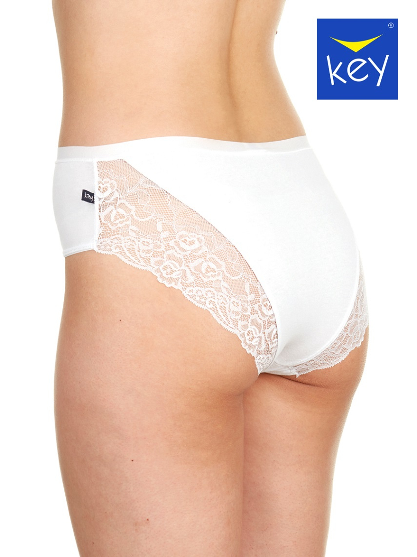 Жіночі трусики-бікіні з ніжної, антиалергенної 95% бавовни з додаванням еластану. Елегантне мереживо ззаду. Поставляються в упаковці з двох штук.