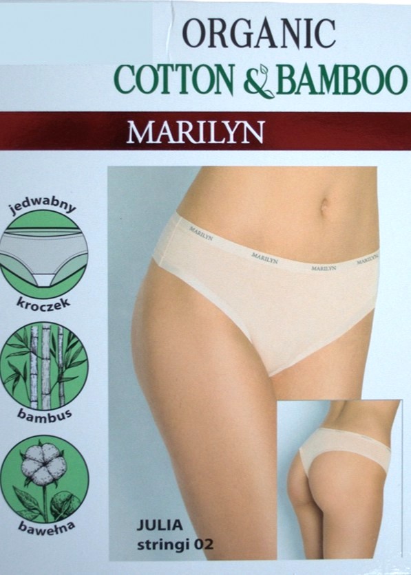Мінімалістичні стрінги, непомітні під одягом, виготовлені з м'якої органічної бавовни та бамбукових волокон. Фасон стрінгів візуально видовжує ноги. Склад: 94,5% віскоза, 5,5% еластан.