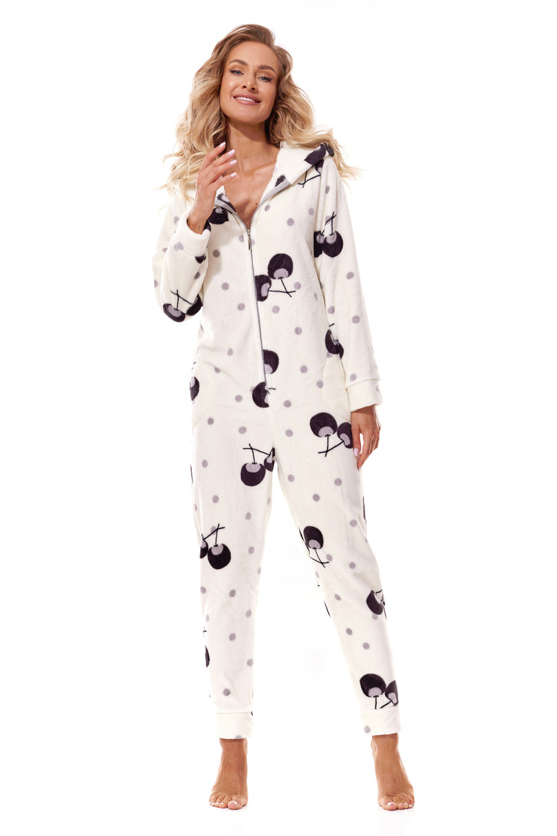 Жіночий комбінезон з довгим рукавом і застібкою на гудзики, пошитий з пухнастої теплої тканини. Склад: 100% поліестер.