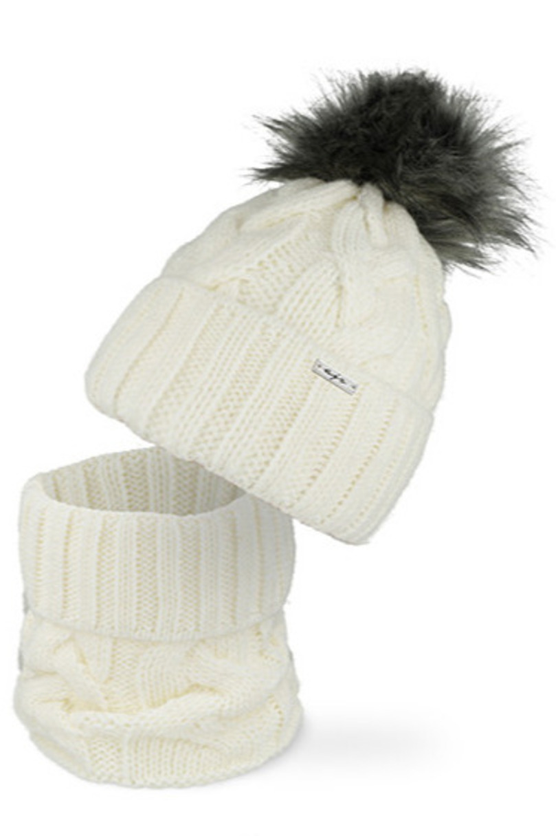 Цей стильний жіночий комплект, що складається з шапки з помпонами та водолазки, – ідеальний вибір для прохолодних днів. Виготовлений з високоякісного трикотажу (90% акрил, 10% вовна), він забезпечує тепло, комфорт та довговічність. Шапка прикрашена елегантним помпонами зі штучного хутра, що додає нотку шарму та жіночності. Підкладка з м’якої бавовни (95% бавовна, 5% еластан), комплект м’який на дотик та забезпечує чудовий захист від холоду та вітру. Це ідеальний комплект для щоденного осінньо-зимового стилю.