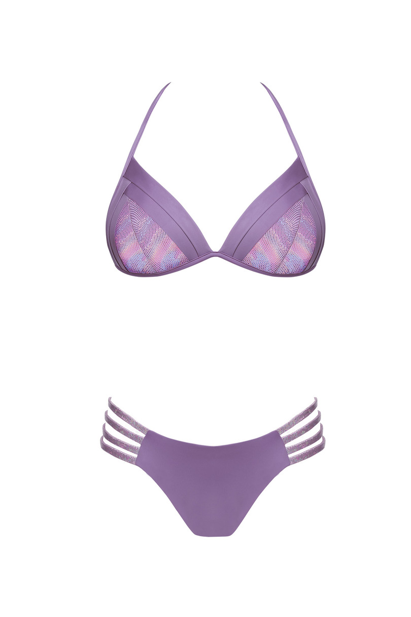 Винятково елегантний двосекційний купальник з колекції Secret. Чашечки з підкладкою та ефектом пуш-ап моделюють фігуру. Ззаду застібається та зав'язується на шиї. Ексклюзивний бренд та унікальний дизайн дозволять вам почуватися особливою. Склад: 78% поліамід, 22% еластан.