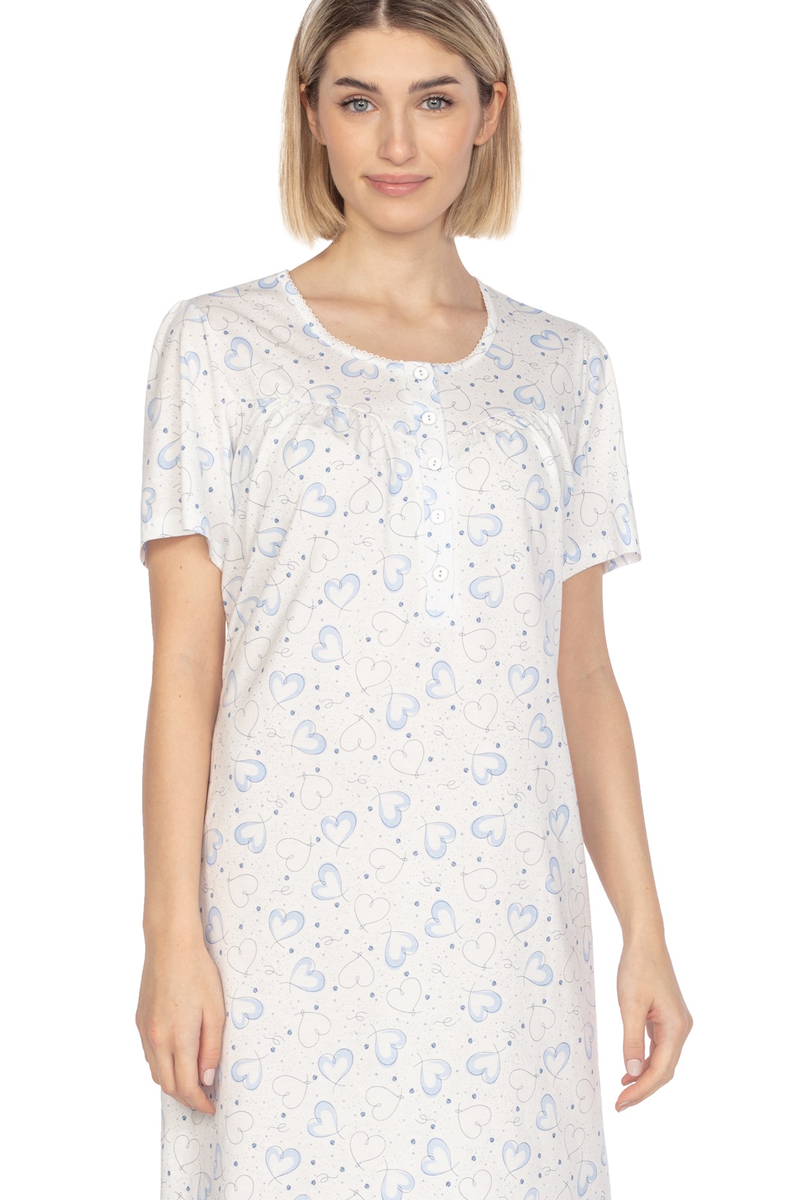 Бавовняна жіноча сорочка, візерунок сердечко. Короткий рукав, круглий виріз, застібається на гудзики. довжина до коліна. Склад: 100% бавовна.