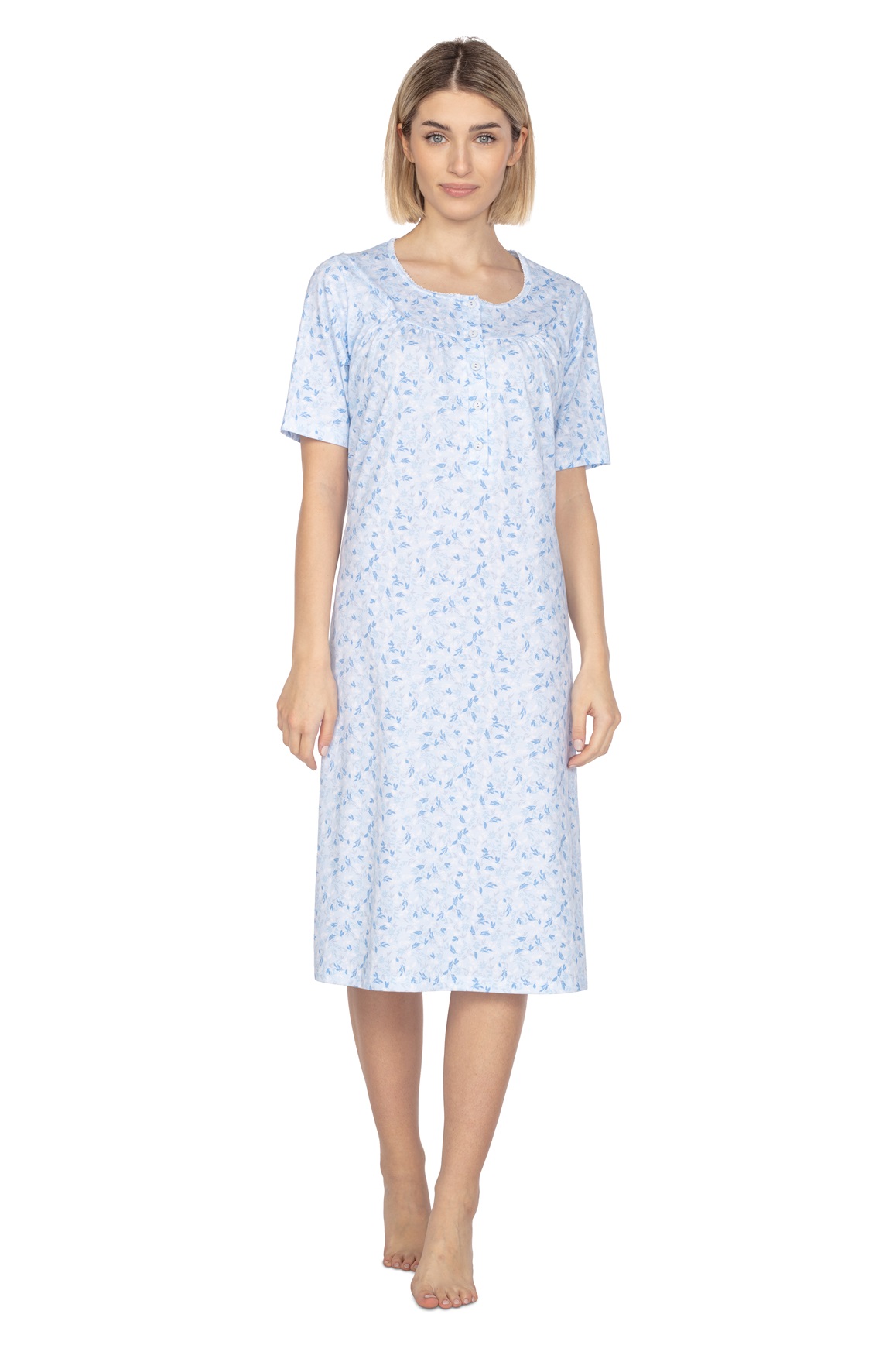 Жіноча сорочка з якісної бавовни з малюнком, горловина застібається на гудзики. Короткий рукав, довжина до коліна. Склад: 100% бавовна.