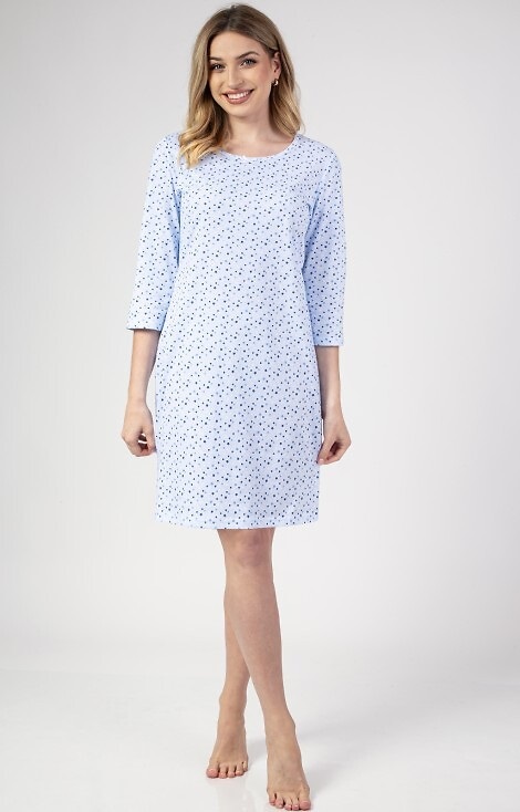 Зручна бавовняна жіноча сорочка прикрашена зірочкою. Довжина рукава 3/4, напівкруглий виріз і довжина до коліна. Склад: 100% бавовна.