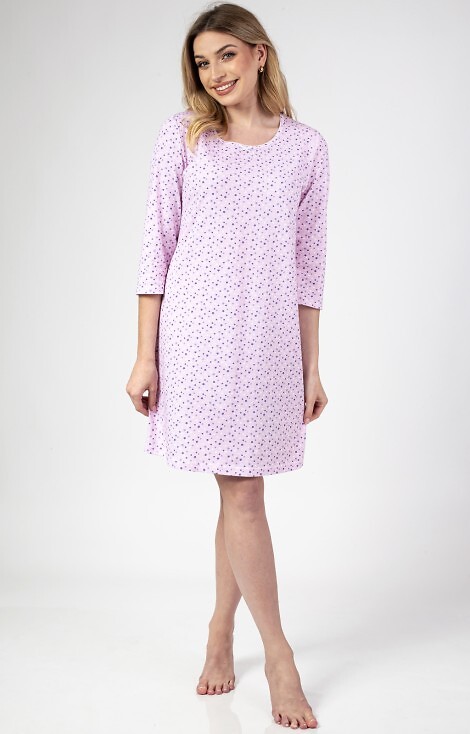 Зручна бавовняна жіноча сорочка прикрашена зірочкою. Довжина рукава 3/4, напівкруглий виріз і довжина до коліна. Склад: 100% бавовна.