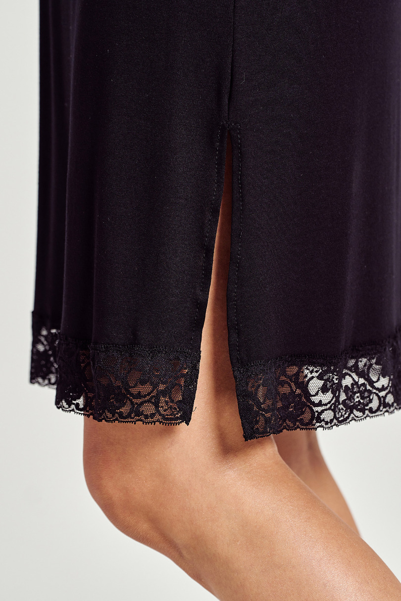 Жіноча сорочка на тонких бретелях з віскози, V-подібний виріз, оброблений декоративним мереживом. Довжина сорочки вище коліна, тому що з боків є розрізи. склад: 95% віскоза, 5% еластан