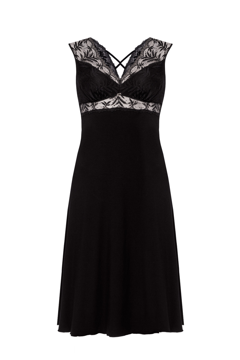 Ця чуттєва жіноча нічна сорочка, виготовлена з високоякісної м'якої віскози, ідеально підходить для жінок, які цінують елегантність та комфорт. Модель довжиною до литок чудово драпірується по фігурі, підкреслюючи жіночні вигини. Глибокий виріз горловини, спина та лінія грудей прикрашені ніжним ажурним мереживом з квітковим мотивом, що додає виробу неповторного шарму. Чашечки підкладені тканиною, що забезпечує комфорт та ледь помітну підтримку. Чуттєвий розріз збоку візуально подовжує ноги та додає нотку легкості. Нічна сорочка упакована в елегантну коробку – ідеально підходить для подарунка.