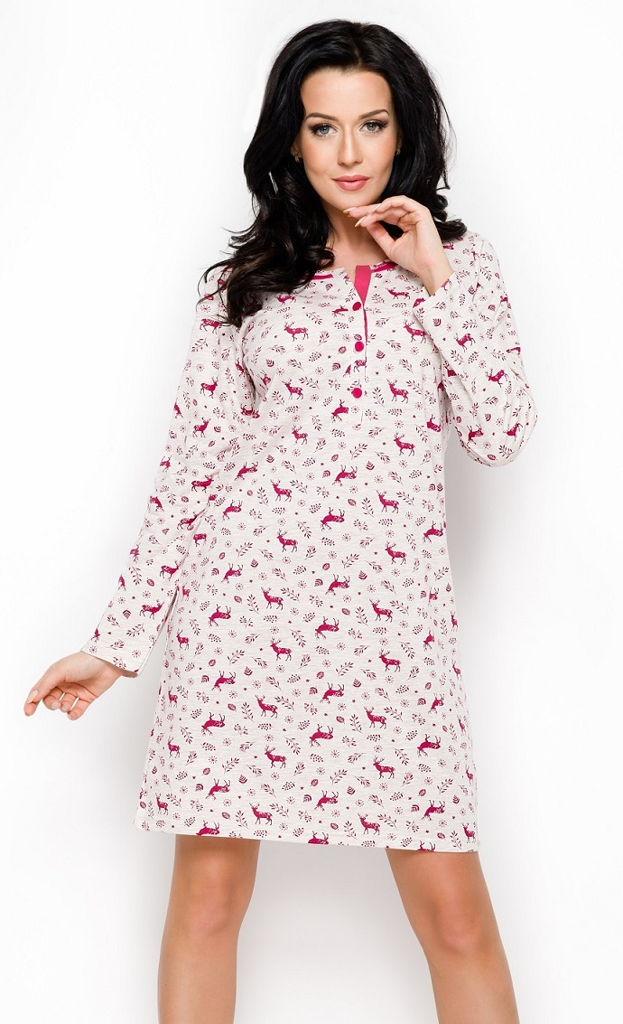 Жіноча сорочка з довгими рукавами. Виготовлений з високоякісної бавовни з малюнком. Напівокругле виріз, застібається на ґудзики. Довжина вище коліна.