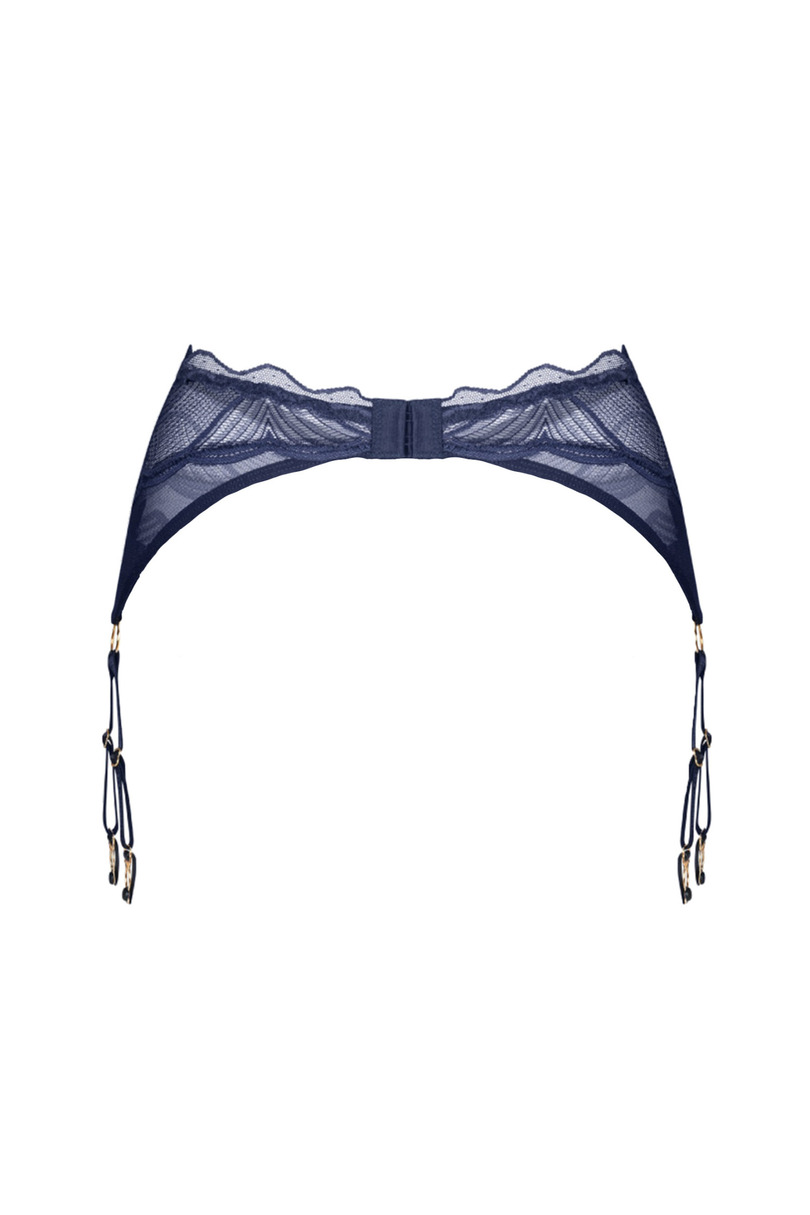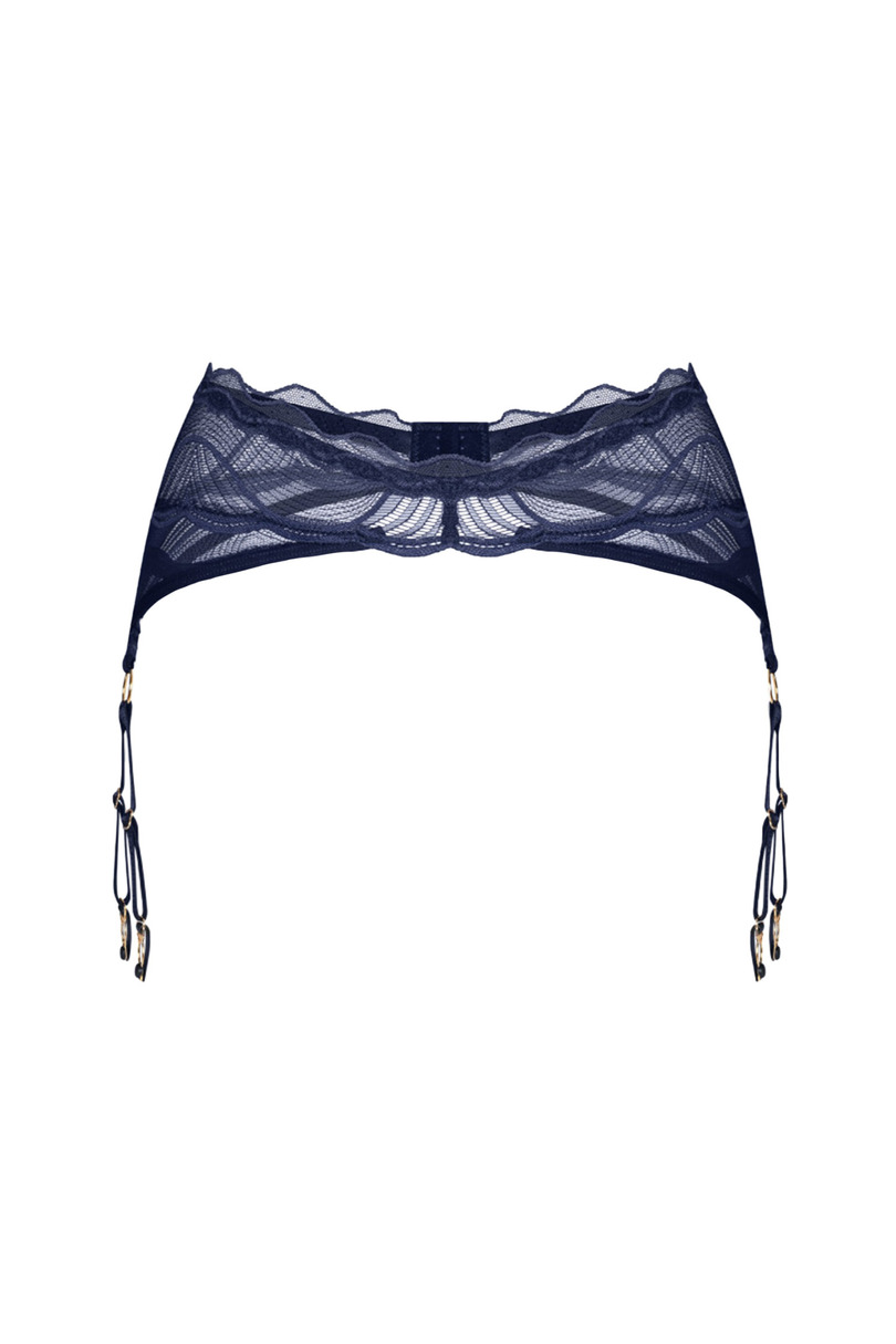 Пояс для панчіх MP Blue – це елегантний та чуттєвий аксесуар, який ідеально доповнює стилі білизни з цієї ж колекції. Виготовлений з гнучких високоякісних матеріалів, він поєднує легкість напівпрозорої сітки з ніжним органічним візерунком, надаючи всьому виробу розкішного та сучасного характеру. Глибокий темно-синій колір чудово підкреслює силует і пропонує стильну альтернативу класичному чорному. М'яка, приємна на дотик тканина забезпечує комфорт, а регульовані, інтегровані бретелі для підтяжок забезпечують ідеальну посадку. Регульована застібка ззаду забезпечує стабільність та комфорт, одночасно підкреслюючи талію неймовірно жіночно. Золоті деталі доповнюють образ, надаючи поясу ексклюзивного вигляду. Пояс для панчіх MP Blue – ідеальний вибір для жінок, які цінують елегантність, вишукані деталі та ідеальну посадку – як для особливих випадків, так і як розкішний елемент свого повсякденного гардеробу білизни.