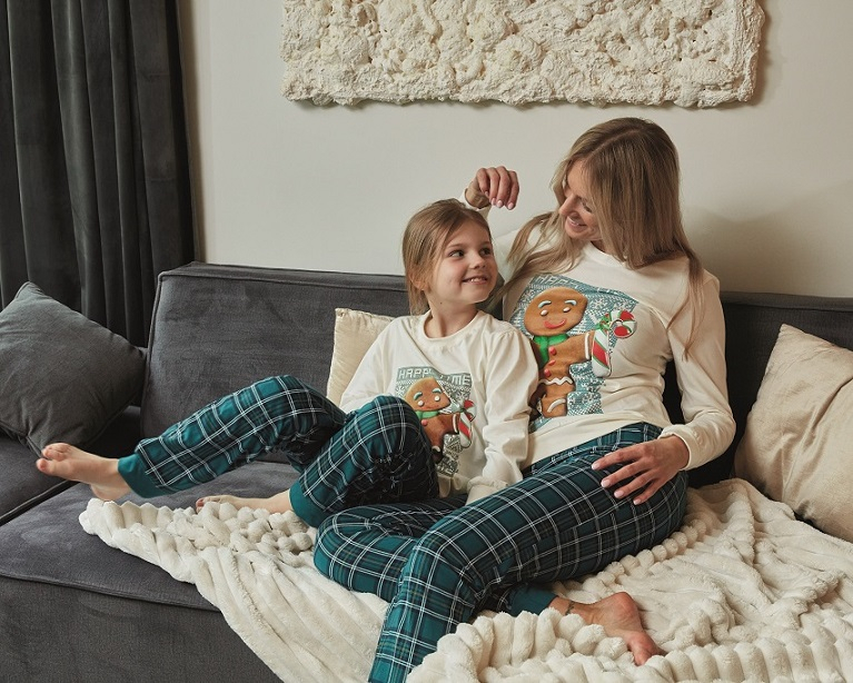 Піжама з різдвяним мотивом з високоякісної бавовни. Футболка з довгим рукавом. У комплект входять довгі штани з малюнком. Виріз, манжети та низ сорочки оброблені зручною манжетою. Склад: 100% бавовна.
