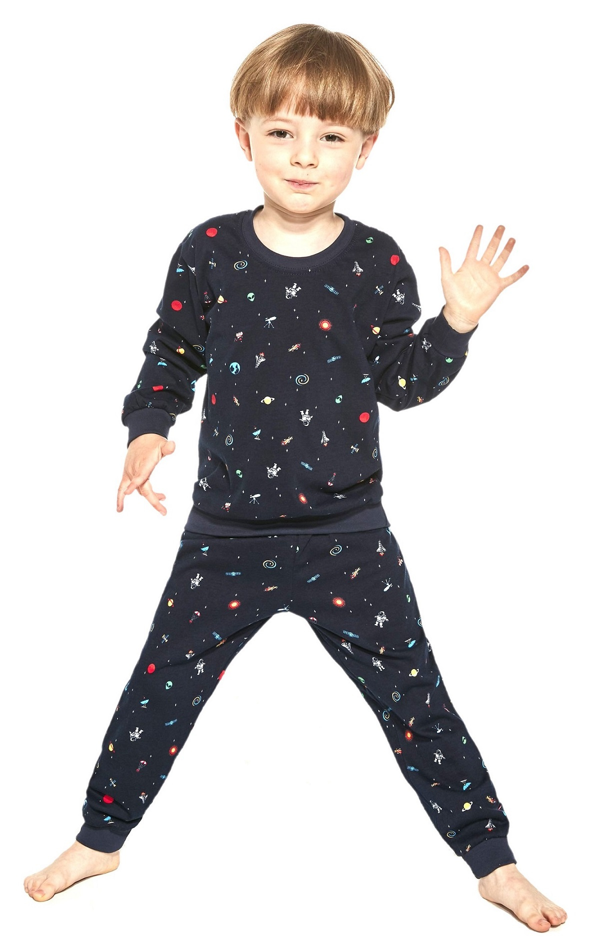 Піжама для хлопчика з високоякісної бавовни. Блуза з довгим рукавом, довгі штани. Піжама з малюнком, оздоблена зручним рантом. Склад: 100% бавовна.