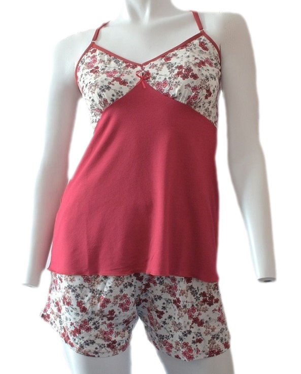 Жіноча піжама з високоякісної віскози. Камізол. Комплект доповнюють зручні квіткові шорти. Склад: 94% віскоза, 6% еластан.