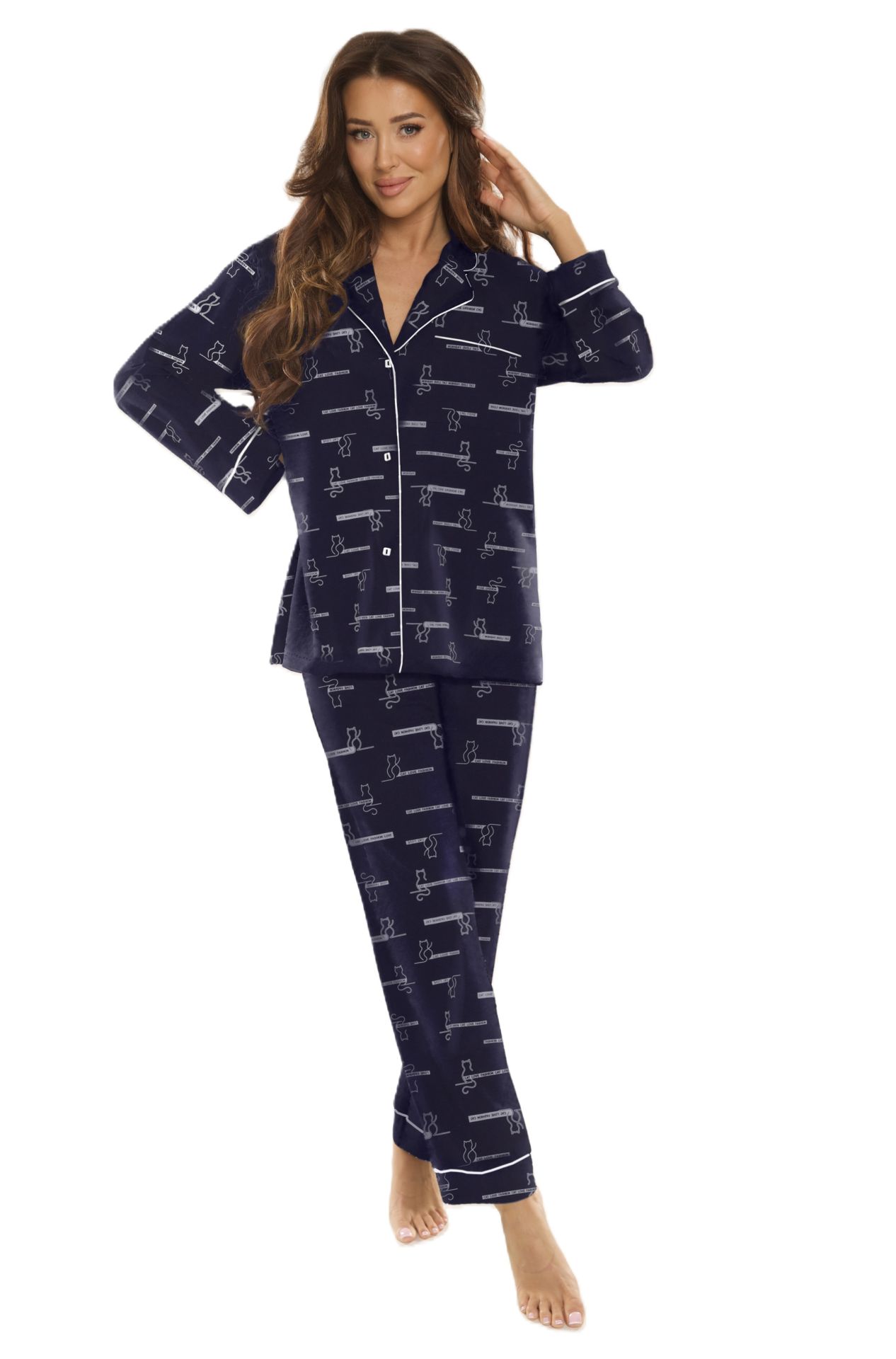 Жіноча піжама з довгими рукавами на блискавці з високоякісної віскози з дрібним візерунком у горошок. Ці довгі штани прямого крою з накладною кишенею на грудях складаються з 96% віскози та 6% еластану.