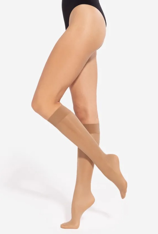 Жіночі гольфи 20 DEN прозорі, що стимулюють кровообіг шляхом поступового стиснення. Невидиме посилення пальців, манжета, що не тисне. Склад: 87% поліамід, 13% еластан.