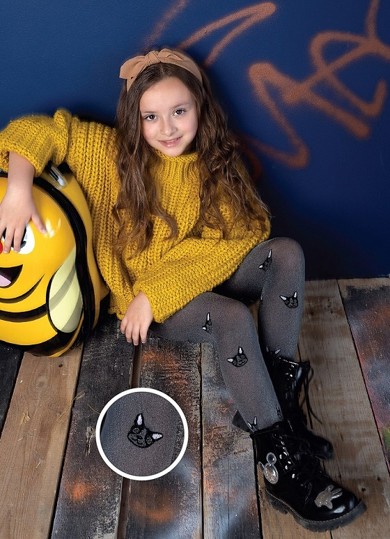 Колготки для дівчинки з малюнком 50 деньє. Прикрашена візерунком собачка. Виготовлений з мікрофібри в 3D технології. Надзвичайно гарний і гнучкий. Склад: 57% поліамід, 34% поліестер, 6% еластан, 3% поліпропілен.