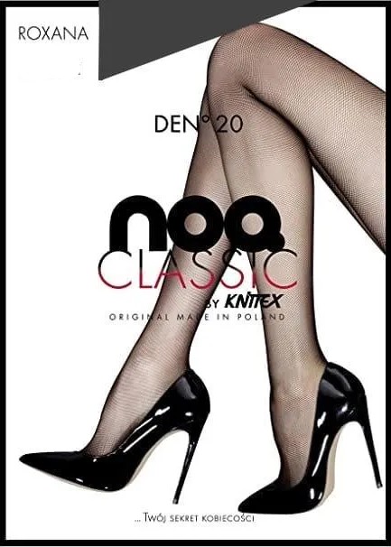 Жіночі колготки щільністю 20 деньє з дрібним сітчастим візерунком, що нагадує сітку. Посилена частина трусиків з бавовняною ластовицею та плоским швом. Посилені пальці. Склад: 91% поліамід, 9% еластан.