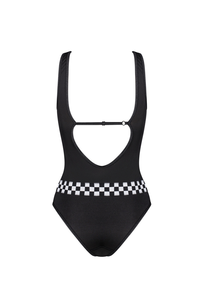 Готові до заряду енергії та впевненості? Боді Rallien – це унікальний виріб у спортивному стилі, який поєднує сміливий дизайн із жіночною чуттєвістю. Ідеально приталений силует із глибоким вирізом та відкритою спиною підкреслює фігуру, надаючи їй динамічного характеру. М’яка, еластична високоякісна тканина забезпечує комфорт, а чорно-білий мотив прапора на талії додає запеклого, гоночного вигляду. Цей боді змусить ваше серце битися частіше – ідеально підходить як для білизни, так і для особливих випадків.