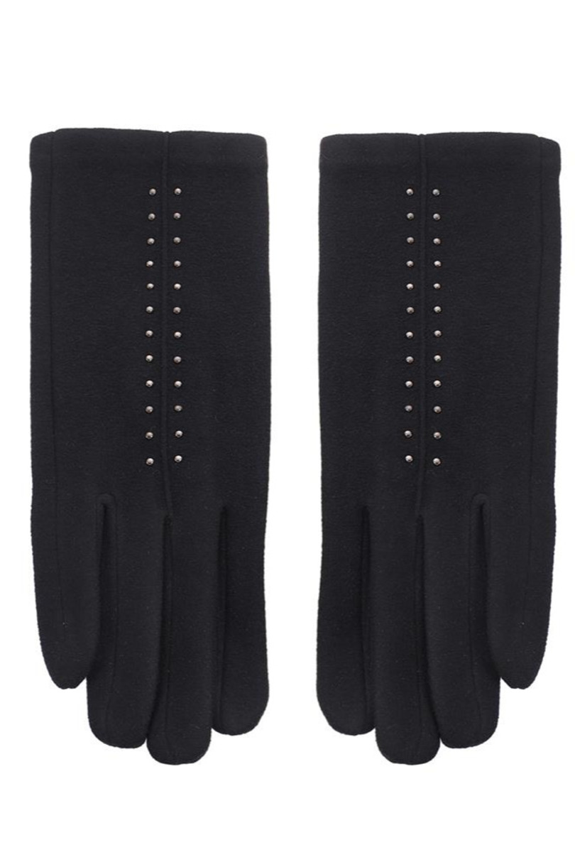 Жіночі рукавички зі срібними стразами. Виготовлені з матеріалу, схожого на замшу, внутрішня частина підкладена м'яким, зігріваючим флісом. Вказівний і великий пальці мають спеціальні шви, що дозволяє користуватися телефоном, не знімаючи рукавичок.