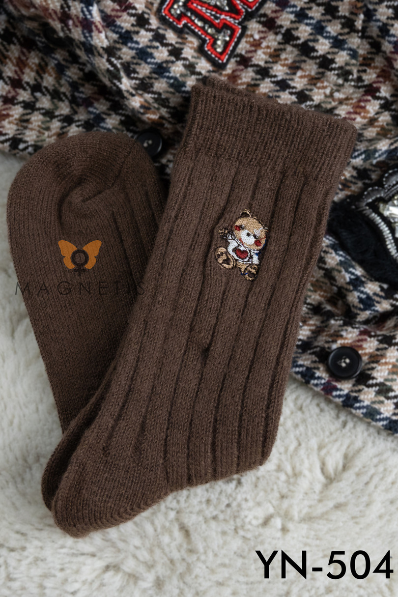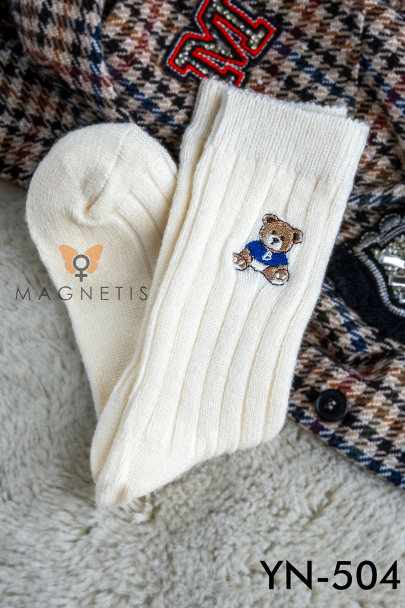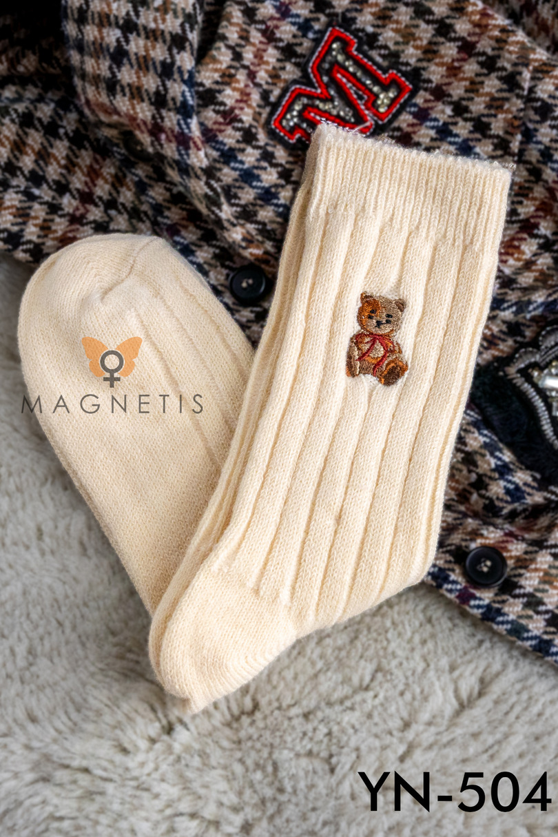 Жіночі шкарпетки MAGNETIS YN-504 – це втілення затишного стилю в холодні дні. Виготовлені з високоякісної суміші бавовни, вовни та віскози, вони м’які, теплі та приємні до шкіри. Їхня ребриста структура забезпечує комфортну посадку, а вишитий ведмедик у светрі з літерою «B» додає шарму та модного штриха. Доступні у п’яти стриманих кольорах, вони ідеально поєднуються з домашнім та повсякденним одягом. Ідеально підходять для зими, як подарунок або просто для комфорту.