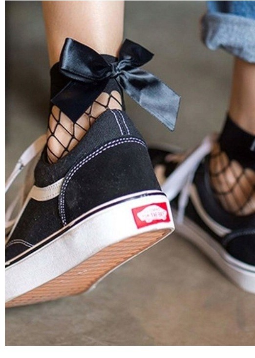 Шкарпетки в сітку з декоративним швом ззаду, оздоблені бантом. Склад: 92% нейлон, 8% еластан.