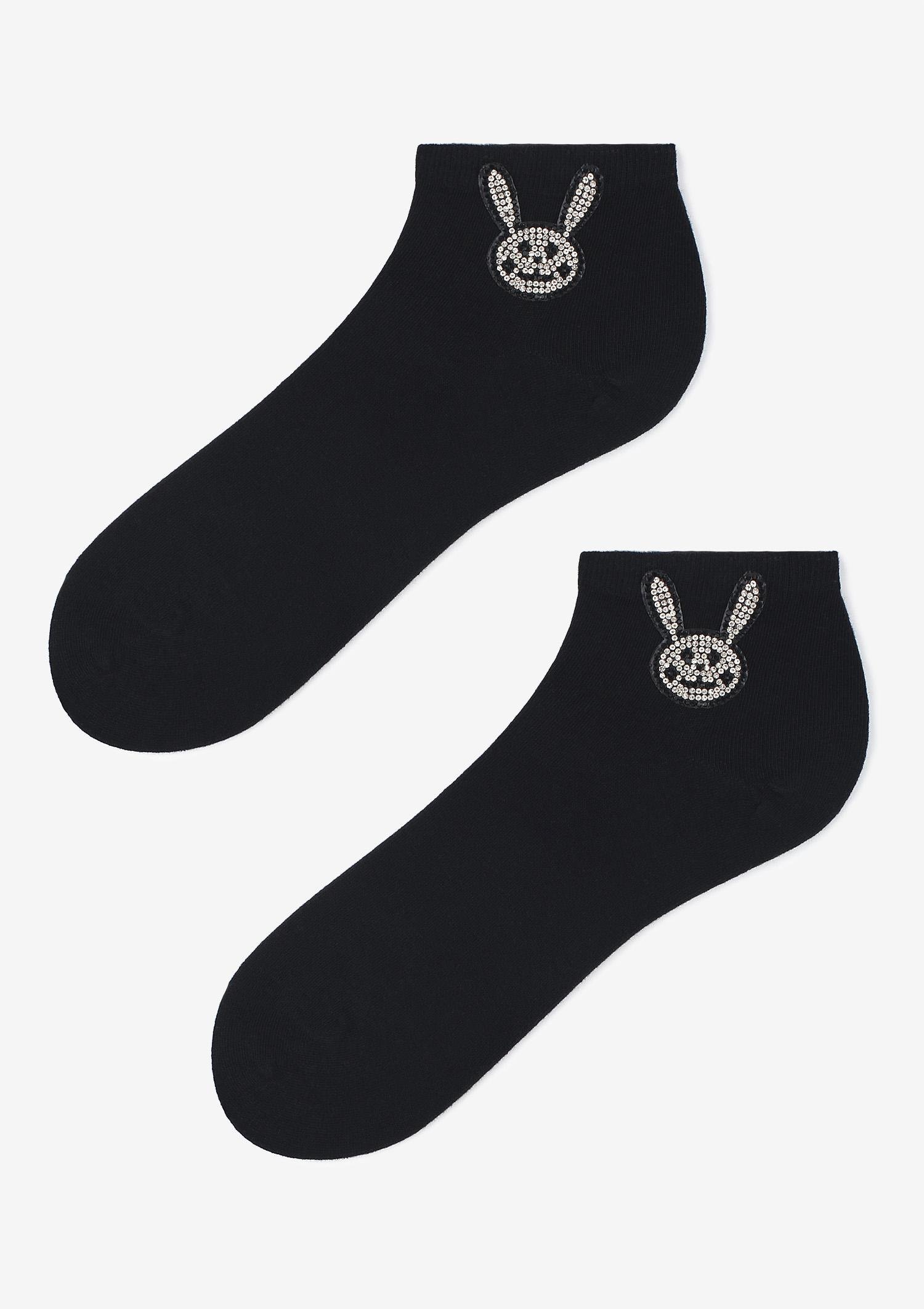 Жіночі шкарпетки до щиколотки з блискучою головою кролика. Виготовлена з натуральної бавовни найвищої якості. Плоский і м'який шов забезпечує комфорт при носінні Склад: 75% бавовна, 20% поліамід, 5% еластан