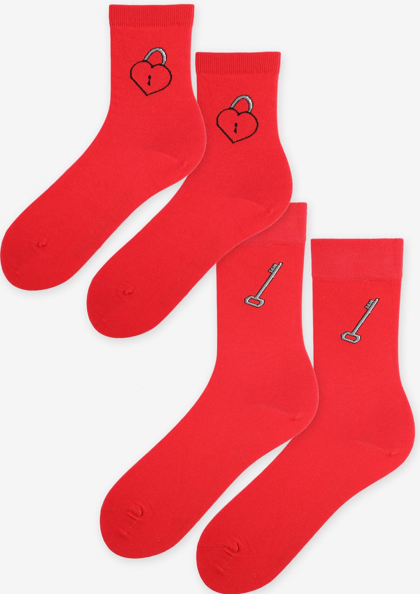 Жіночі шкарпетки до Дня святого Валентина. Виготовлені з натуральної бавовни найвищої якості. Плоскі, м'які шви забезпечують комфорт. Склад: 80% бавовна, 15% поліамід, 5% еластан.