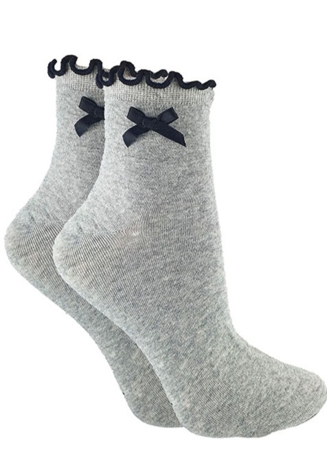 Жіночі шкарпетки з високоякісної бавовняної суміші. Оригінальний та модний дизайн, плоскі шви, еластична стрічка, декоративні манжети та ніжний бантик збоку. Склад: 80% бавовна, 15% поліамід, 5% еластан.