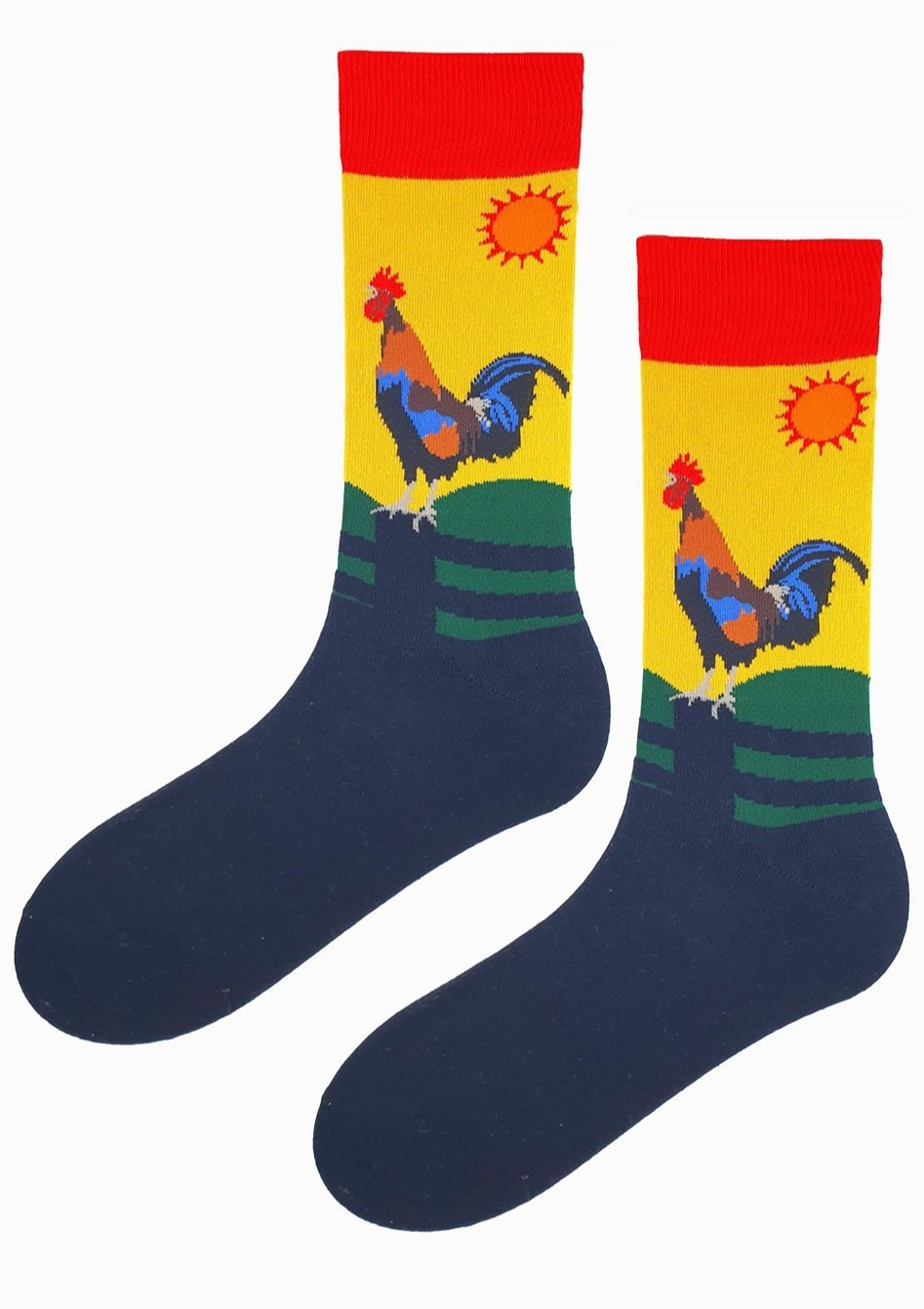Ці чоловічі шкарпетки з химерним візерунком, виготовлені з м'якої бавовни, гарантують комфорт, повітропроникність та приємне облягання ніг протягом усього дня. Еластичний верх забезпечує стабільну посадку без будь-яких точок тиску, а довжина шкарпеток нижче щиколотки. Склад: 80% бавовна, 15% поліамід, 5% еластан.