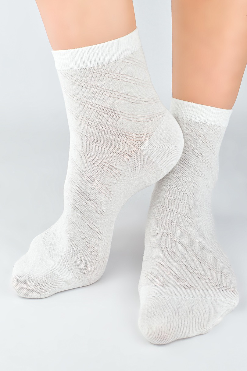 Шовкові зручні жіночі шкарпетки однотонного кольору з м'якого, приємного на шкіру трикотажу з дрібним малюнком. Некомпресійна манжета. Склад: 74% віскоза, 16% поліамід, 5% шовк, 5% еластан.