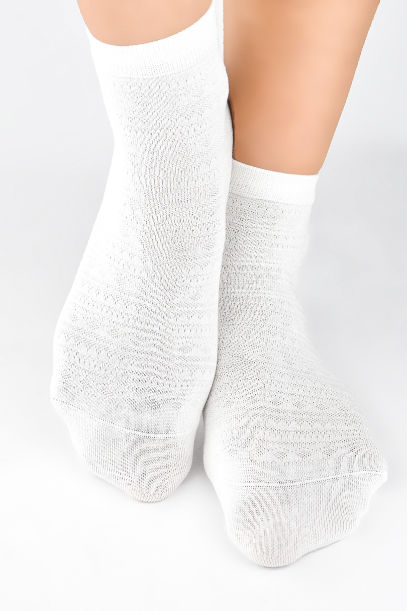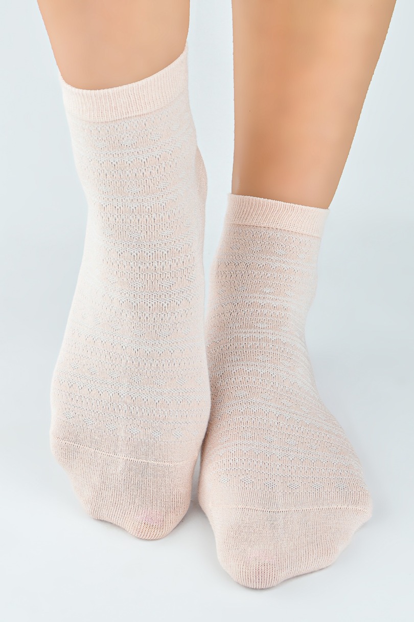 Шовкові зручні жіночі шкарпетки однотонного кольору з м'якого, приємного на шкіру трикотажу з дрібним малюнком. Некомпресійна манжета. Склад: 62% віскоза, 31% поліестер, 5% шовк, 2% еластан.